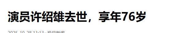 可是万万没想到,到了第二天便有噩耗传出, 许绍雄撒手人寰了,享年76岁。 当不少人还以为是谣言时,TVB官方在中午直接发出了“青山远行,艺影长存”的悼念。