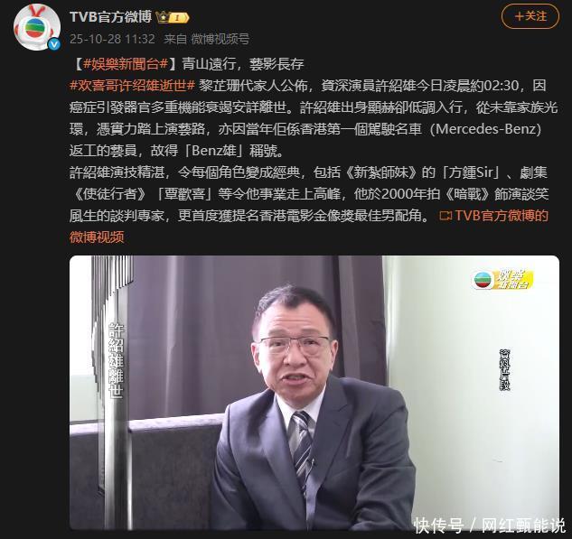 许绍雄逝世,众星悼念 在港剧圈能响当当叫上名来的演员,肯定得有许绍雄。 他被称为TVB的“金牌绿叶”,虽没演过多少主角,却凭借一个个鲜活的配角形象,深受人们喜爱。