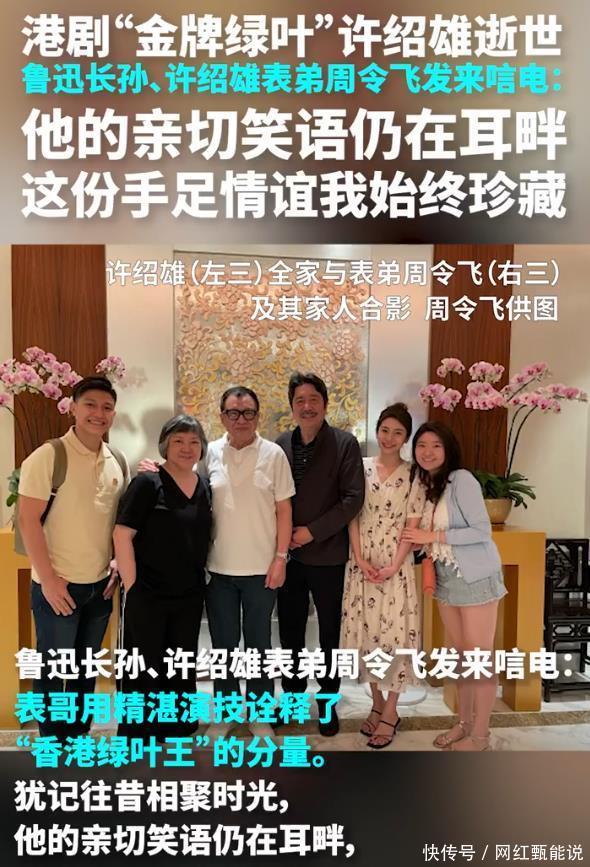 不过他却很少借这层关系炒作,如今被扒出来,人们更觉得他太过低调。 作为许绍雄的表弟,鲁迅长孙周令飞对于他的离世也很心痛,声称“痛失了一位好亲人。”